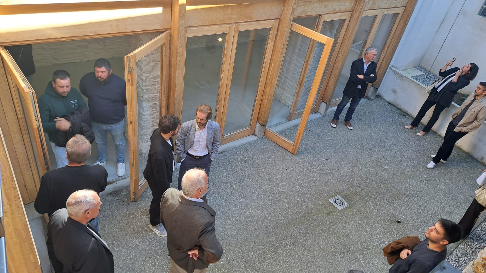 Los asistentes al acto, guiados por los arquitectos responsables de la obra, el aserradero Madefon Cooperativa y la Carpintería Álvarez, ambos locales, han podido visitarlas instalaciones del centro y conocer, al detalle, las diferentes soluciones y aplicaciones de la madera en la obra.